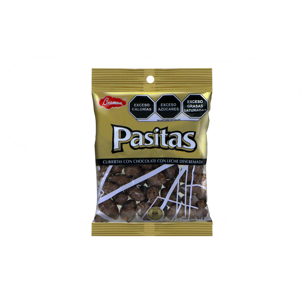 Pasitas cubiertas con chocolate con leche descremada