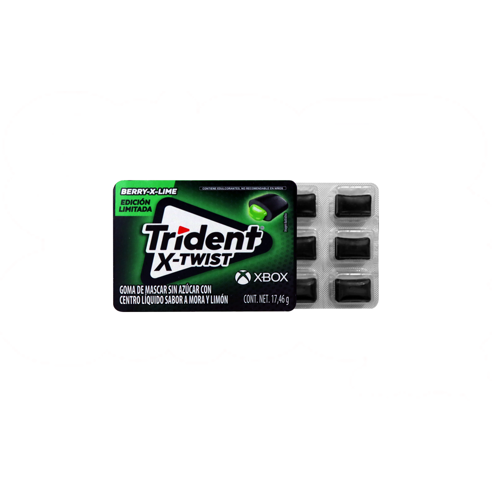 Goma de mascar sin azúcar con centro líquido sabor a mora y limón